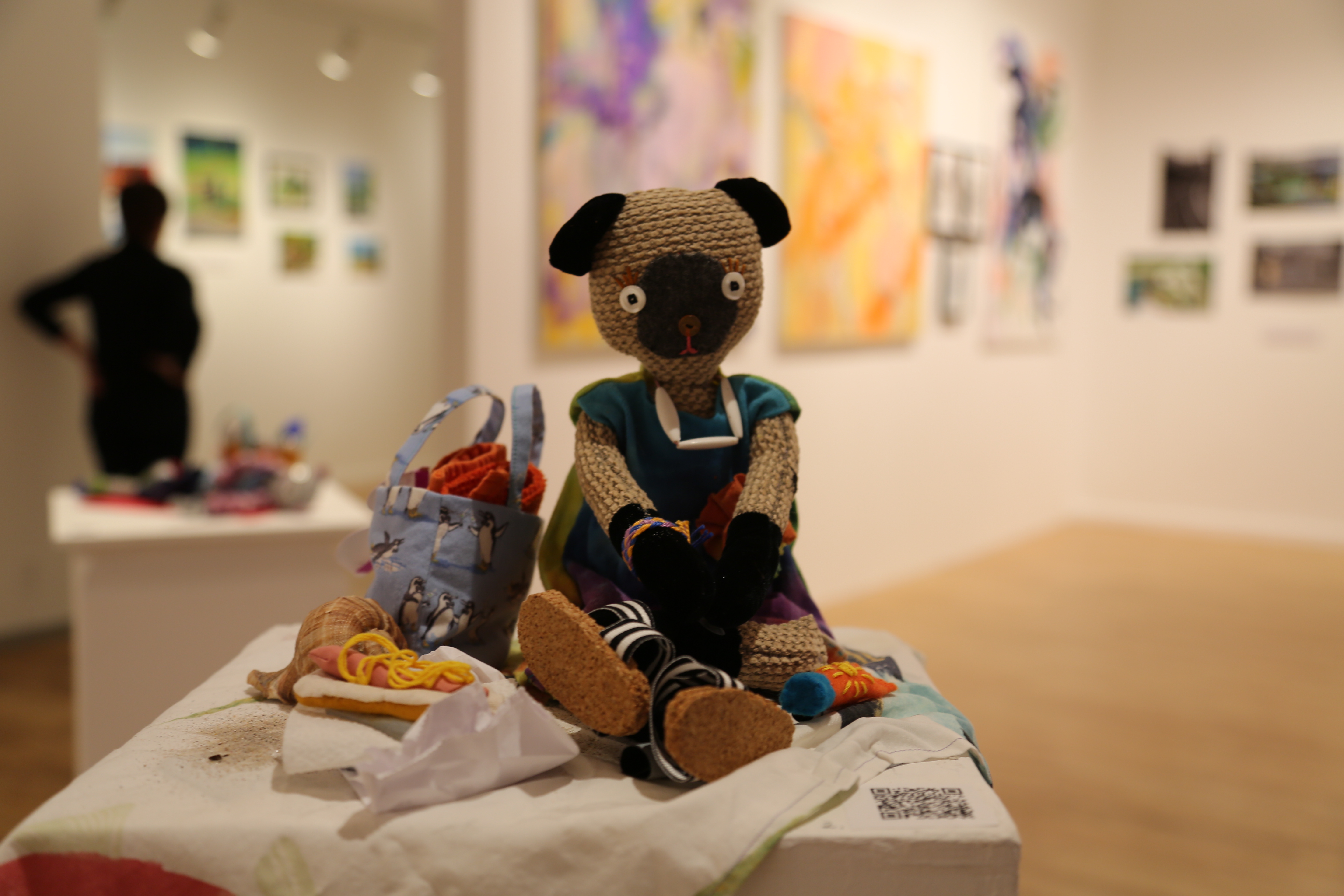 The stitch faces enjoyed being part of an exhibit, and particularly enjoyed the opening reception, even though they are, at heart, introverts. They made many new acquaintances, and Charity even found a new home. In general, they don’t believe in leaving their comfort zone, because what’s the point of having a comfort zone if you’re always being told to leave it? But this time, a little discomfort seemed worth it, for the sake of a little horizon-expanding.